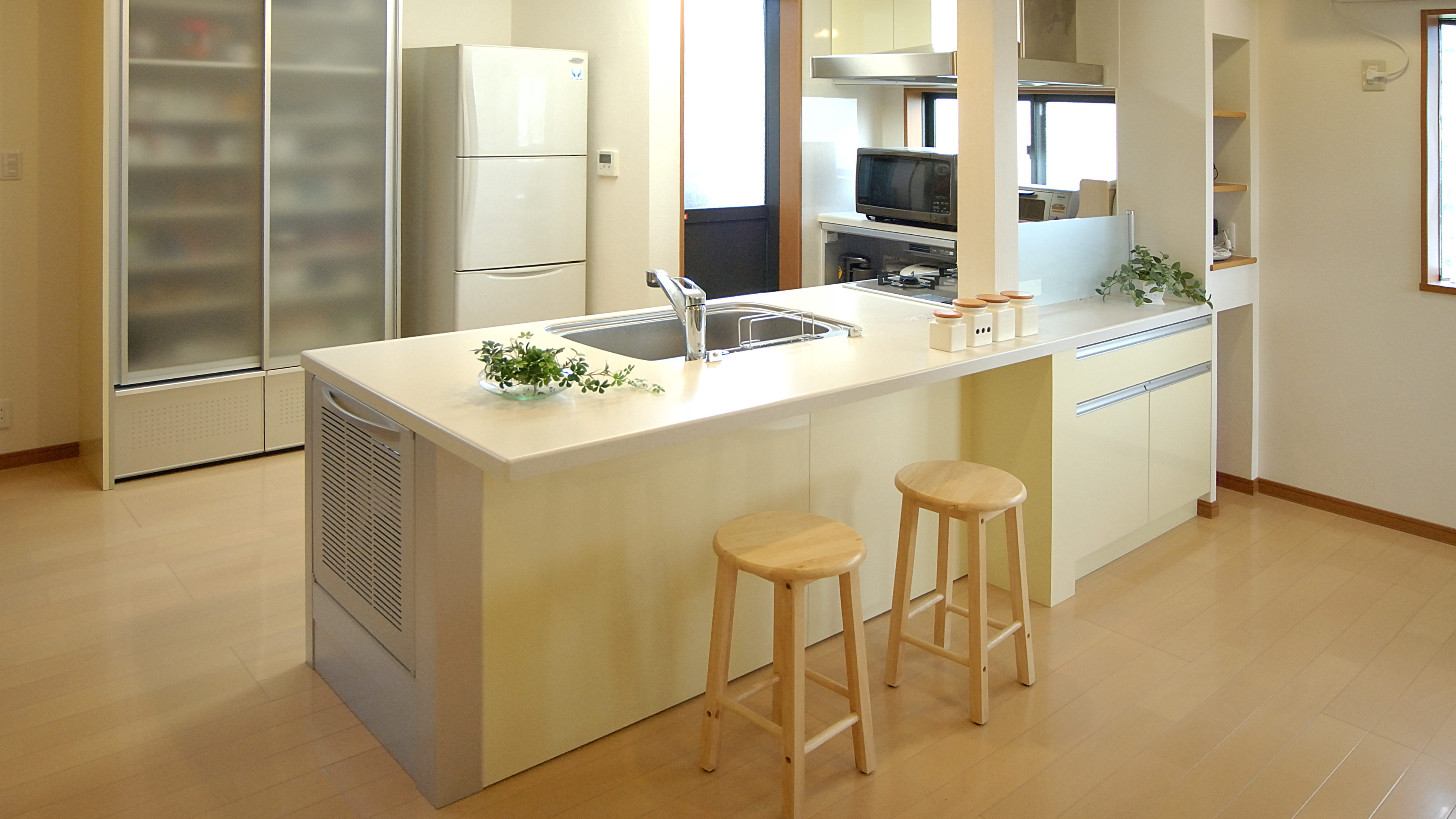 狭く感じてしまうと、使い勝手の悪いキッチンと言うイメージに繋がってしまいますので、対面式キッチンをプランニングする場合は、十分な広さが確保できるかも検討する必要があります。